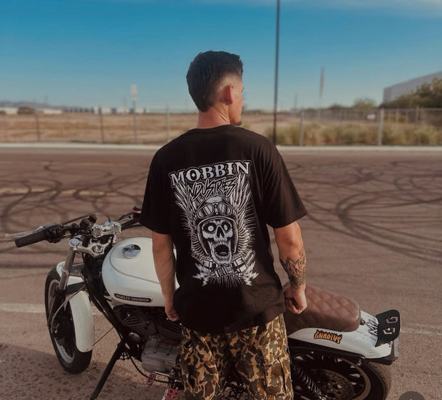Mobbin Industries is proud to roll out shit featuring original artwork from Ricky Evans, a tattooer located in the Santa Clarita Valley. Ricky has built his name on bold, heavy designs that hit hard. His style is direct, aggressive, and built to last, just like the culture we stand on. We chose to bring Ricky's art into Mobbin because it speaks the same language as our community: raw, unfiltered, and unapologetic. You'll see the same intensity in his tattoo work carried over to the products we've put out. From the shop to the streets, his art carries the weight of real craft and dedication.